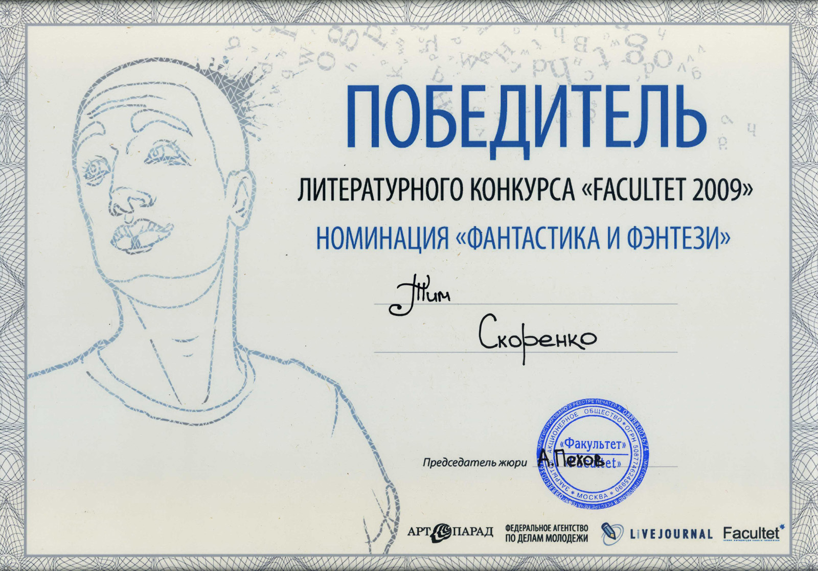 Премия «Facultet», 2008. Лауреат в номинации «Фантастика и фэнтези».