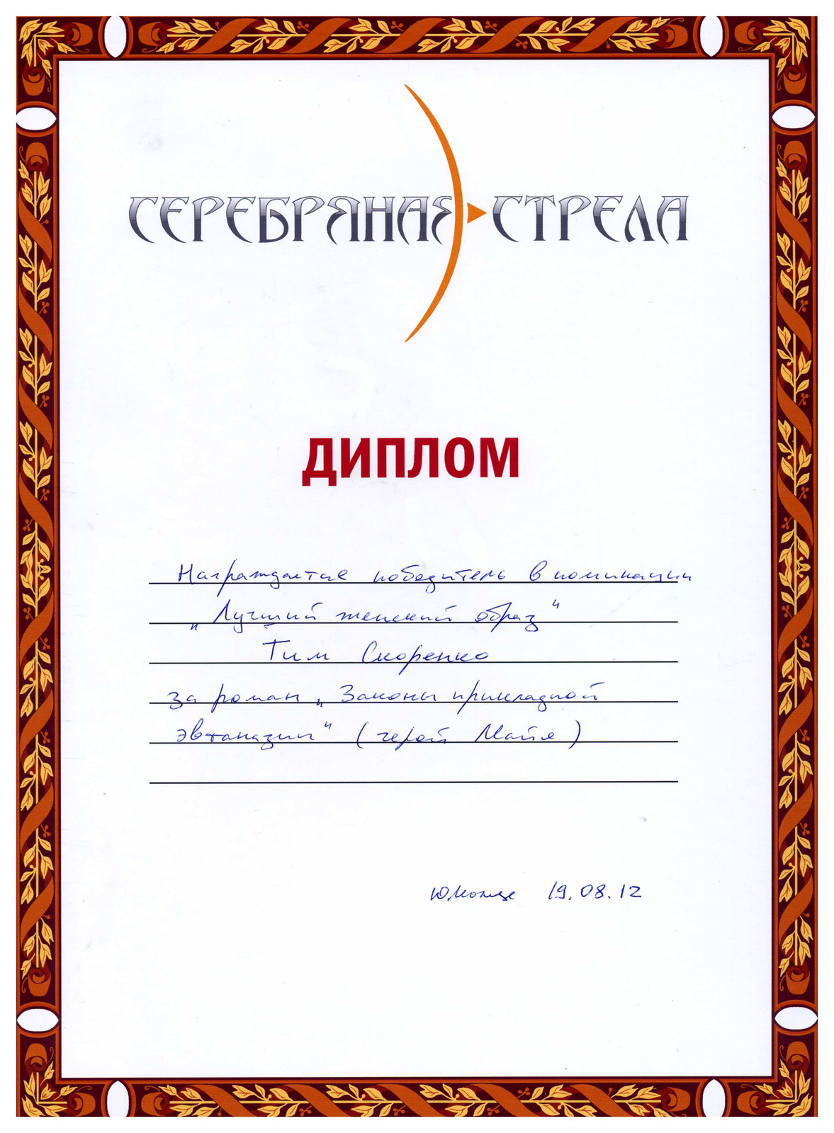 Здесь собраны некоторые дипломы и наградные документы, связанные с литературными премиями, конкурсами и конвентами.