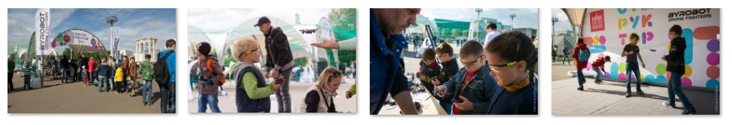 Читая лекции на выставке-шоу дронов и квадрокоптеров Drone Expo Show, я познакомился с Дмитрием Литвиновым, руководителем стенда боевых дронов Byrobot. Дмитрий оказался прекрасным организатором и по моему приглашению сделал на фестивале «Конструктор» большую площадку, связанную с беспилотниками. Площадка делилась на несколько зон. В одной детей учили управлять квадрокоптерами, в другой показывали элементы высшего пилотажа, в третьей печатали элементы дронов на 3D-принтерах, привезенных на фестиваль, и так далее. Площадка пользовалась неизменным успехом.