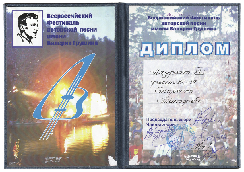 Всероссийский фестиваль авторской песни имени Валерия Грушина — старейший, крупнейший и наиболее престижный фестиваль авторской песни и поэзии в русскоязычном пространстве. Я был на фестивале пять раз — в 2005, 2006, 2007, 2008 и 2014 годах. В последний приезд я вошёл в число лауреатов фестиваля.
