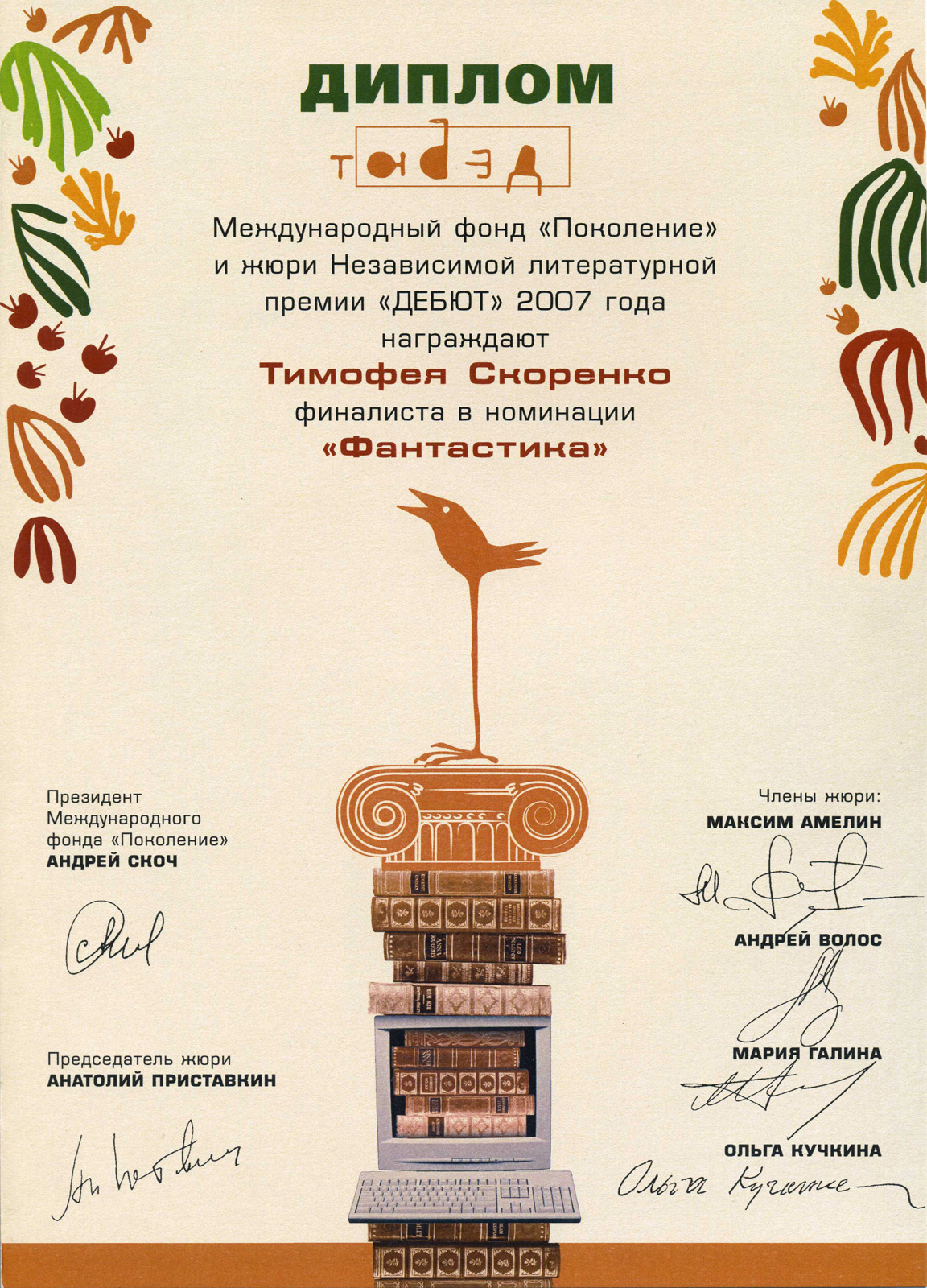 Премия «Facultet», 2008. Лауреат в номинации «Фантастика и фэнтези».