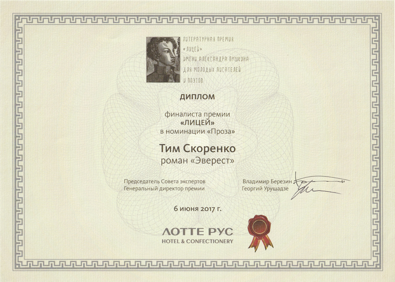 «Эверест». Премия «Лицей», 2017. Финалист в номинации «Проза».