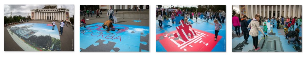 Площадка представляла собой огромный пазл площадью 238 м2 (14 на 17 метров) с изображением центрального павильона ВДНХ «Дом народов России», снятого со стороны главного фасада. Сборка пазла проходила непосредственно на точке съёмки, перед павильоном, и в ней принимали участие все желающие под руководством профессионального сборщика, участника чемпионатов России Анастасии Чукиной. В среднем участники собирали пазл за 1,5-2 часа, после чего волонтёры разбирали картину и цикл повторялся. Зрители могли наблюдать за процессом со специальной трибуны. Фотографию сверхвысокого разрешения специально для фестиваля сделал Валентин Монастырский. Я выступил в роли идейного вдохновителя (иначе говоря, придумал концепцию), а также принимал участие в обсуждении конкретных деталей.